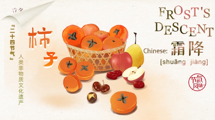 The traditional Chinese solar calendar divides the year into 24 solar terms. Frost's Descent, (Chinese: 霜降), the 18th solar term of the year, begins this year on Oct 24 and ends on Nov 7.