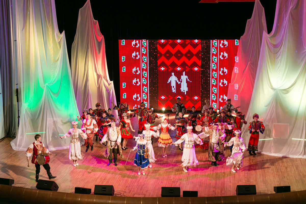 Dancers perform on stage in Minsk, Belarus, on February 2, 2018. Photography by the Cultural Office of the Chinese Embassy in Belarus, the Chinese Cultural Center in Minsk