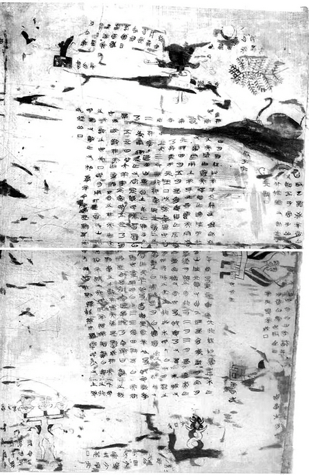 Li also mentions the tomb that yielded the Zidanku manuscripts was re-excavated by the Hunan Museum in 1973, uncovering another big discovery of a silk painting depicting a man riding a dragon. It is one of the only two Warring States Period silk paintings preserved to date.