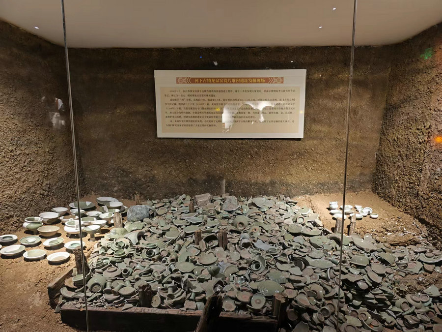 A pile of more than 10,000 Longquan celadon shards unearthed from Huai'an's Hexia Ancient Town, on display at the China Caoyun Museum in Huai'an, East China's Jiangsu province [Photo by Yang Xiaoyu chinadaily.com.cn]